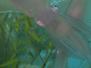 なんという暑さでしょうか・・・。たまりません。みぎ、ドライスーツで熱中症になりかけました・・。水温は22度と快適なので、明日からウエットにしようと思います。勝手な反省しました(笑)川奈ビーチ、本日もいっぱいお客様が来てくれました!!アオリイカの産卵もばっちり見れました。まだまだ産みそうです。かわいいウミテング・そして大人気のツノモエビSPさん、カエルアンコウygも元気にしてましたよ。あしたもいい海になりそうですね~楽しみです!!シラスが泳いでいました。イワシも群れです。夏を感じましたよ~シマアジも回ってきています!!ボートの限定ポイント赤根では、むれむれ三昧です!!キンギョハナダイはもちろん、ベラの産卵もはじまって、根頭は大賑わいです。ムラサキウミコチョウも場所を変えて塊で3個体みつけました。いいですね。シロタエイロウミウシもハナオトメウミウシも健在です。群れのなかを泳ぐとほんと気持ちいい♪ボートはちょっと水温が下がりますが・・・・夏を満喫しましょう!!明日も皆様のお越しをお待ちしております!!