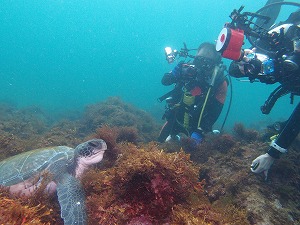 連休最終日です。台風の影響はうねりが少々入るぐらいで、波はありましたが中は穏やかでした。赤根にもはいれましたよ♪よかった!!キンギョハナダイの群れを満喫して「あーーやっぱり赤根だなぁ」と思いながら入りました。イサキの群れもとってもきれいでしたよ。コガネキュウセンやサキシマミノウミウシも迎えてくれました。本当にありがとう、赤根!!また来年もよろしくお願いします!!また会いにいくからね!!さて、ビーチでは、アオウミガメ記者会見中って札が立てられるほど、みなさん入れ替わり立ちかわり(笑)みてて本当に面白いです。そして行方不明だったカミソリウオが砂地で見つかりました。フラフラしているようで・・また心地いいところを早く探して欲しいです。クロユリハゼygが多くなり、大きくなってます。群れでは、カマスなどもいいですが、個人的にネンブツダイygのぎゅっとした群れがいいとおもいますよ。ツバメウオも元気でした。ちょっとうねりが入り一時危ないときもありましたが、今は落ち着いています。明日のコンディションはお問い合わせください。