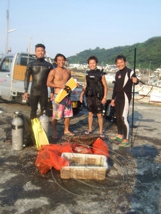 清掃しながら周りを見まわすと、アオリイカがかなり産卵に来ていました。カマス、ムツ、アイゴの群れも多かったです。