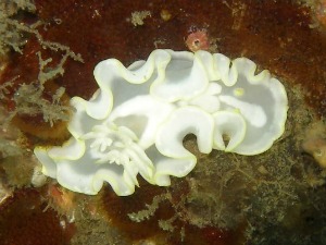 ようやくうねりが収まりました。南からの訪問者がたくさん見つかるので台風もきらってばかりではいけませんね!以前からいるシチセンチョウチョウウオやケラマハナダイ・シコクスズメダイ・ニラミギンポはやっぱり人気者ですね。画像のシロタエイロウミウシも鮮やかなホワイトがとーっても綺麗で目立ちます。あっそうそう。1匹居なくなっちゃったかと思われた手前のエリアのスージーくん。ちゃんといてくれましたよー!!