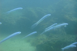今日は、初島にぶらっと行ってきました~!何気に初遠征かも(笑)透明度が良く、12mから15mはありました。水温も26~27℃あり、あったかい海でした。生物はアオリイカの大群が見れた~。川奈ではもうあまり見ることがなくなっているのでしっかり目に焼き付けておきました!やっぱ迫力ありますね!!あとはキビナゴの群れを追うワラサ。ヒュンヒュン追いかけてました。他にもキンギョハナダイの群れやアナハゼなどが見れて楽しかったです。