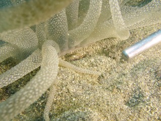 今日はのんびーりと2ビーチダイブです。水温が1度ぐらい下がって、ちょっとひんやりする時もあったりしました。でも、がっつりダイビングを満喫してきました~。今日も生物情報盛りだくさんです。まずはモエビ団地、グビジンに4~5匹ぐらいのイソギンチャクモエビがくっついてます。みんなでおしりをフリフリしていて、かわいいです。岩地の奥の方にはシマキンチャクフグ、オキゴンベのちびちゃん、イガグリウミウシ、ベニキヌツツミガイなんかがいます。あと、今日は僕の好きなウミウシの1匹、サラサウミウシのちっさいやつ見つけました。久しぶりに見てテンションアップです!砂地にはマルガザミ、ホウボウ、ムレハタタテダイなどがいます。相変わらず、ハリセンボンもいます。写真を撮ろうとするとサァーっと逃げていくのに次の日にはまた同じ場所にいます。それが面白いです。明日もいい海でありますように。byすぎちゃん