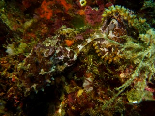 今日は近隣のショップのガイドさんがプライベートダイブの為、ご来店~。前回、川奈に来たときに、ちょっと珍しいエビちゃんを見つけたらしいのですが、ホームグラウンドではない為、詳しい位置が特定できなかったみたい。だから今日は「絶対に位置を特定してやるっ!」とまぁ、こんな感じで来たんです。そしたら鬼頭さんも「行く行く~!」となり、ダイビングに出かけて行ったのでした(笑)2人が上がってきたので、エビの事聞こうと思ったら、「すぎちゃ~ん!!」と逆に呼ばれた。行ってみると・・・。SDカードを持った鬼頭さんが。このメディアにヒョウモンダコが写ってるからと一言。ブログ用?と疑問を抱きつつもパソコンへ。そして画像を見てビックリっ!!なんとっ!!ヒョウモンダコの交接シーンが撮られているではないか!!驚いた。2人もマダコとかは見たことあるけど、ヒョウモンダコはない、すげ~!!!と陸に上がってきても興奮してました。これを見つけた為、2人はここに釘付けで、結局エビちゃんは見てこなかったって(笑)とこんな感じで今日はヒョウモンダコダイビングでした。byすぎちゃん