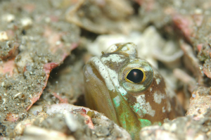 やっと海に入れたぁ!!朝のうち少し北東の風吹きましたが、予測通り昼前には風も止み静かな海になりました。まずは透明度がスコーンっと抜けていい青が一面を覆いつくしてます。そして、先週八幡野が水温高くこっちは何で上がらないんだろうと思ってたら遅れること1週間・・・本日16℃をマークしました。やっほー!!あったけー。浅場でまずはサビハゼの卵とせっせと世話をする親を見て、ジョーの様子が気になり見に行くと・・・おーちゃんといるいる。更に穴にぜーんぜん入らないとっても良い子ちゃんになってます。ダンゴちゃんに主役を奪われていて悔しかったんでしょうかね?この画像もノートリミングでびっくりするほど寄らせてくれます。口のサイドがこんなに綺麗なグリーンなんですね?スパンコールを付けておめかししてるみたい。こんなショットも平日はじーっくり撮影できますよ!明日はまた北東の風が吹く予報です・・・ううううう。ご予定されていらっしゃる方はコンディションの確認をお願いいたします。