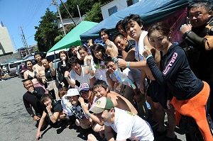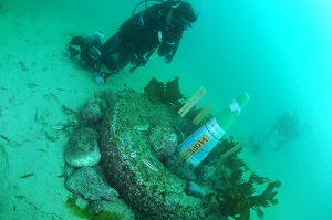 エントリーの際にこぶしぐらいの石を拾い石碑を作りました。この石碑は2011・3/11の東日本大震災をいろんな意味で忘れないようにするため、あるいは未だ困難に遭遇されている方達へのいち早い復興を願うためのものです。今日集まってくれたダイバーの思い祈りまだまだ困難に立ち向かわなければいけない方々に元気、勇気を届けばいいと思います。