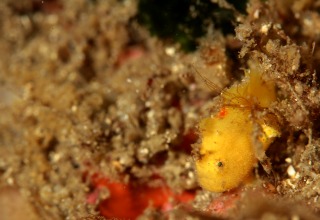 二本目はツノガニ、ベニカエルアンコウ(白・オレンジ)、ミガキボラのタマゴなど、奥のエリアも良い被写体ばかりです。そして今日も!チビベニカエル健在です!ドカンの先の土嚢についてます。黄色です。かわいいです。このままいつてくれ~!!透明度も良好、水温も若干上がった!楽しい海でした!byすぎちゃん