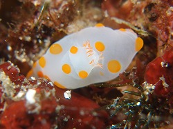 今日は快晴。水面もベタベタ~。朝エントリーしたときには、すごく悪かった透明度ですが、潜っている間に塩が変わって、一瞬12mくらいの青い海が広がりました!こんなことってあるのですね~ほんとにびっくりしました。2本目にエントリーしたときにはまた少し濁ってしまってましたが(^^;本日のゲストさんは先週川奈が荒れてしまって違うポイントに移動になってしまったため、今日リベンジに来てくださったのです♪念願のダンゴにビクニンを堪能していただけて、よかったです~ありがとうございました!写真もた~くさんいいカットを撮られてましたので、今日の海況にはたくさん載せさせていただきます♪今日は、久々にメイタガレイの赤ちゃんを見ましたよ~!カエルアンコウの幼魚もすくすく成長中で~す☆