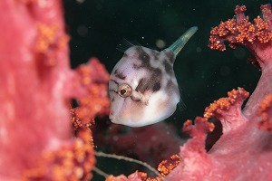 やっと海が静かになりましたよ~。2日ぶりの海。穏やかで透明度もバッチリ~!気持ちイイ~!ダンゴちゃんは無事です。サザナミフグのポン太に今日も出会えました。浅場も岩地もウミウシがおもしろくなってきましたよ。カンナツノザヤはもちろん、イバラウミウシの仲間やコトヒメなどの極小ウミウシがいっぱい出てきました。近頃よく見るシロミノウミウシは動きのとってもおかしなウミウシです。これもほんとに極小な種なのですが、今日のは1センチちかくあって、割と大きく見やすかったなぁ~。深場の砂地ではホウボウが3匹、川の字になって泳いで気持ちよさそうです。ギンポ岩のミナミギンポはまだがんばっているのですが。。。何気なく覗いた立派なザラカイメンの中に、カモハラギンポが!!そこは温かいの~??じっと動かずにこっちをじ~っと見ていましたよ。南の魚にいはキツイシーズンですね!がんばれ!浅場はギンポパラダイスになっていますよ!ふたごギンポをはじめ、5個体くらいが1箇所で見れます。色とりどり、お好きな子をお選びください!どの子も写真にも撮りやすい良い子ですよ♪