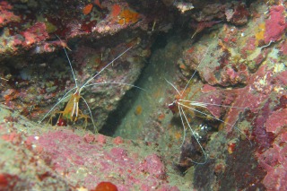 今日は海況も良く、無事川奈でダイビングができました!やっぱりホームは気持ちいいですね~。透明度もグンと上がって12mは見えてました!まず、1本目はカメ狙いで開始。久しぶりにスージーやナオミに会えると思うとウキウキです。しかし、カメゾーンを見ても見当たらない(泣)お散歩、いや遠足中?(笑)次は会えるといいなぁ~。今日はクロホシイシモチやスズメダイの群れがハンパじゃない!!僕は今シーズンで1番群れていたと思います。とにかく、迫力満点!他にもノコギリヨウジウオやサラサゴンベ、キンチャクダイの幼魚、オシャレカクレエビ、クリアクリーナーシュリンプを観測。ネジリンボウも健在ですっ!!まだまだ川奈は盛り上がってますよ~!!