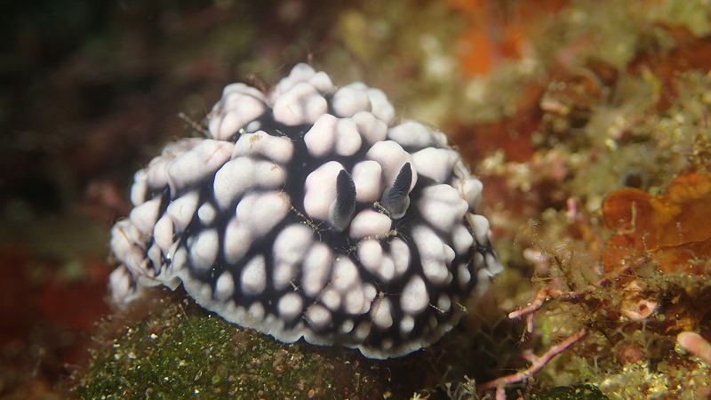 砂地にはハツユキダカラガイという貝が外套膜を出し、自分自身をきれいに被っていたり、