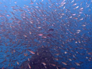 今日はウミガメ狙いのダイビングをしてきました。まだまだカメ人気は衰えませんね~(笑)本当に大人気です。ただ、今日はウミガメちゃん達はお出かけ中でした。会えずに残念です(泣)別のグループは見れていたみたい。タイミング次第ということですね。でも、川奈はカメだけではないですからね。ネジリンボウもいるし、アカシマシラヒゲもいる。相変わらず、魚群も濃いし、潜ってるだけで楽しいです。今日は天気も晴れで水中がキラキラしていて、気持ちよかったです。ソラスズメダイもいつも以上にキレイに見えました。まだまだ季節来遊魚も豊富です。これからの季節は今よりも透明度が上がっていきます。今からわくわくが止まらないです。明日もいい海でありますように。by すぎちゃん