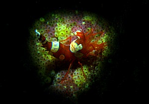今日は昨日までの潮が入れ替わり少しづつ透明度がアップしてきました。朝の内は風もそよそよ吹いていましたが昼過ぎにはベタなぎでしたよー!本日、2名のオープンウォーターの講習生がCカード取得のためにいらっしゃいました。10月に体験ダイビングでウミガメを見て「よっしゃ!Cカードとるぞー!」という具合のノリノリの講習生です。もちろんスキルも全く問題なし。課題をなんなくクリアしています。そしてファンチームはがっつりフォト派のまきちゃん!今日はいつもとちょっと違った撮影の仕方をマスターしにいらっしゃいました。ってことで本日の1枚はこちら。いい感じで光が当たってステージ上の歌手のようでしょ?もうちょっとかっちょいい写真も撮れてましたがそれは温存ってことで・・・・