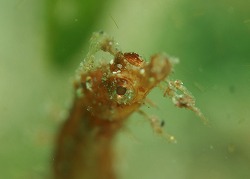よい天気です。朝はまだ北東の風がちょっと強めで、潜水注意かと思いきや、もぐるころにはすっかり波もおさまり、ダイビング日和となりましたよ~♪次々と生まれ続けてる天使の輪ダンゴを探しながら浅場の砂地を徘徊。タコノマクラの上にミヤコウミウシが乗っていました(笑)最近見ているミヤコウミウシは、まだ体長が5センチくらいの子供なのでかわいいですよ♪黒いイロカエルアンコウygやどんどん成長中のちびカエルアンコウ、ホウボウの赤ちゃんなどまだまだベビーたちもたくさん見られますよ。画像のタツノイトコもかわいいです!メバルの幼魚たちも体スケスケでホバリング中~かわいいですよ♪6匹のヒラミルミドリガイが付いていたミルは、穴だらけになってポツンと残されていました。どうやら、食べるだけ食べて、6匹ともキレイに去っていったようです(笑)