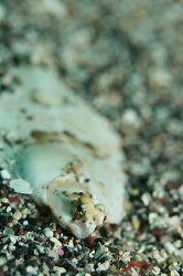 今日の画像はダンゴウオではありません(笑)いい加減他の魚を見せてくれ!って声が聞こえてきそうなので、ダンゴを載せたい気持ちを抑え、メイタガレイの赤ちゃんにしてみました(笑)もちろんダンゴはいっぱいおりますのでご安心ください。メイタガレイの赤ちゃんもダンゴエリアの付近でたくさん観察できます。2センチくらいの小さい子から、少し育った5センチくらいの子もいます。小さすぎるダンゴちゃんで目が疲れたら。。。ちょっとかわいいメイタガレイちゃんでも見てリフレッシュしてみてください(笑)ベビーラッシュの季節です。アナハゼの幼魚もたくさん出てきていますし、カサゴのベイビーもあちこちで産まれています、かわいいですよ~♪