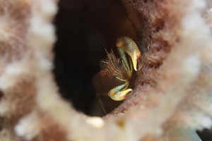 ハリセンボンのちびっこがあちこちにいます。木の枝に隠れたりしてとってもかわいいです♪ジョーフィッシュも今日はご機嫌~。ずっと顔を覗かせてくれていましたよ。最後にはやっぱり蓋閉められちゃいましたが~(笑)ウミウシも、アオウミウシやサラサウミウシの子供が増えてきました!ヒロウミウシもたくさん。ミナミギンポやキイロハギなども一緒に年を越しましたよ(笑)3日まで限定のボートポイント赤根にも行ってきました。午前中は流れもまったくなかったようなのですが、私達の行った午後は、ちょっと流れておりました~。キンギョハナダイも夏より数は減りましたが群れ群れ!スズメダイもいっぱい~。クマノミはほんとに多いですね。ニシキウミウシやちっちゃいミアミラウミウシも見てきました。個人的には白いウミカラマツに付いたオルトマンワラエビのちびちゃんがかわいかったです♪