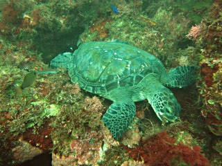 久しぶりに川奈の海に潜ることができましたぁ!!なにはともあれ気がかりな2匹のウミガメちゃん達に会いに行きました。スージーちゃん&ナオミちゃん共に元気にご飯をバクバク食べてました!!!!(嬉)そして何よりの吉報が。新しいウミガメのタグくんの登場です。左の後ろヒレ付近に白いタグらしきものを付けたアオウミガメと遭遇しました。更に海から上がってODAの渡辺さんにまたまた違う子と遭遇してる写真を見せてもらい大興奮。ひょっとしたら新たに2匹のアオウミガメが仲間入りかもです。明日も引き続きウォッチングしに行きたいとおもいまーす。