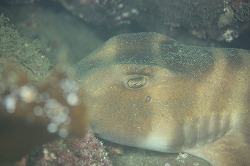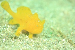 今日はどんより曇り空。海はベタベタですが透明度は良くありません(^^;今日のゲストさんはダンゴウオを見たことがない!ということで、最後の1匹貴重~なラストダンゴを見にいってきましたよ!もうちょっと!がんばって居続けてくれるといいなぁ~。砂地にはクロヒラアジが回っていました。回遊魚もやってくる季節ですね♪カエルアンコウ、シマウミスズメ、ウミテングの砂地の幼魚シリーズも癒され度満点です。午後は、岩地にネコザメがいたという情報をいただき見に行ってきましたよ~!1mくらいもかわいい~子供です!ビーチでネコザメはとっても珍しいんですよ♪しばらくいてくれるといいなぁ~。
