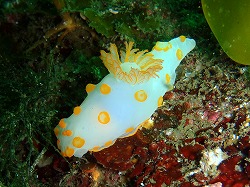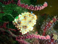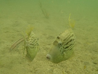 気持ちよく晴れました!が・・・暑い・・・。気温計を見たら37度!・・・見なければよかった・・・(笑)海はこれ以上ないくらい穏やか~。透明度はちょっと回復しているようなしていないような(^^;平日だったのでの~んびり写真を練習のダイビングでした。ちびカエルやちびウミテングもあまり動かないので写真練習の被写体にはもってこいですよ♪ずっとペアでウロウロしていたヒフキヨウジですが、お腹に卵を抱えています。カップルだったんですね♪カワハギやオハグロベラはあちこちで縄張り争い中。岩地では、ハナオトメウミウシが2匹にキイボキヌハダウミウシ、ネンブツダイが日に日に増えてます。浅場ではウミタナゴの生まれたばかりの赤ちゃんがいっぱい群れています、かわいいですよ~!