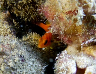 今日も良い海でした。相変わらず、タカクラタツ、カミソリウオ、イロカエルアンコウはずっと同じ場所についてくれています。オオモンハタがハオコゼを捕食しているシーンも見れてテンションが上がりました。なんやかんやで水中にも弱肉強食の世界があるんだなと改めて思いました。オオモンハタが魚を銜えた猫に見えた瞬間(笑)ツリー横のブイのチビオキゴンベもかわいいです。海藻に隠れてしまうことが多いですが、海藻から頭だけちょこんと出している姿をうまく写真に収めると達成感抜群?(笑)2本目はコケギンポ、アオリイカ、キンチャクダイの幼魚などを観測。