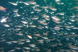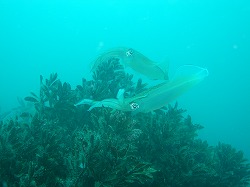今日は待ちに待ったロクハンの日イベントでしたよ~。いろんなエリアのお店合同で、総勢50人以上のモジモジロクハンダイバーさん(または、ウエット・ドライダイバー笑)が集合しました~。水中宝探しに皆さん夢中でした~。楽しんでいただけましたでしょうか?海のほうも、一日穏やかで、透明度もいいです♪アオリイカは午後に爆発!20匹ほどが集まっていました。マトウダイもゆ~らゆら!カエルアンコウの幼魚も数え切れないくらいうじゃうじゃ~。ダンゴウオもOK!ネンブツダイもどんどん増えてきているし、ボ~っと漂っているだけでも気持ちのいい海ですよ♪ボートで赤根にも行ってきましたよ。先週末にオープンしたばかりですが、すでに魚影が濃い~濃い~!イサキにワラサもいっぱい!キンギョハナダイも玉になっていますよ~。イガグリウミウシやニシキウミウシなど、ボートならではのウミウシも!盛りだくさんな一日となりました~。