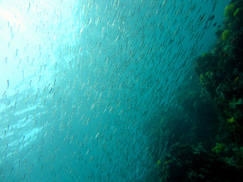 逃げ回るイワシの群れは、まるで雲海のように見えて幻想的♪