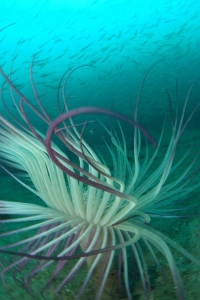 今日はアジとカマスとムロアジとネンブツダイがぐちゃーっとなっていてどこを見て良いやら悩むくらいの・・・いや悩まずどこ見てても大丈夫くらいの群れでしたよ!!砂地のムラサキハナギンチャクとカマスの群れがめっちゃ綺麗。
