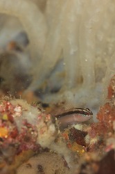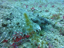 今日は一日どんより曇り空。朝からずっと北東の風でした。波うねりはありましたが、そんなに大きくなることもなく、通常通りに潜れました。透明度も、ちょっと奥へ行くとまだまだ良いです!干潮の時間になるとちょっと白濁してしまうので、ワイドなら朝イチがオススメですよ!今日のゲストさん達はカマスの群れ狙いということで、ビーチの奥まで足をのばしてきましたが、残念ながらカマスはゲットならず。あんなにたくさんいた群れ、どこに行ってしまったのだろうか・・・?砂地の深い方では大きなヒラメにキビレミシマがいましたよ。午後はマクロに切り替えて、いろいろ見てきました。メイタガレイの赤ちゃんは今日も確認できました。ジョーフィッシュはちょっと臆病でした。サビハゼの卵もあちこちに。ヤリイカの卵をバックに撮るオキナワベニハゼやイチモンジハゼが今イチオシですよ!ウミテングもがんばっちゃってます。がんばっちゃてると言えば、久々に見たセホシサンカクハゼ、まだいたんだ~?!南の子、寒いのに頑張ってますね!!