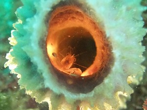 きのうからのうねりもすっかりとれて、静かな海になりました。秋の海、砂地のハゼ類や季節来遊魚もいいですが、甲殻類も増えてきましたよ。今年はスタートがちょっと遅かったイソギンチャクモエビ、イソバナカクレエビ、アカホシカクレエビ。そして、最近減ってしまっていた画像のクシノハカクレエビは久々に見ましたよ。ザラカイメンの中に住むエビですが、このカイメンが減ってしまっています。観察するときはダメージを与えないようにやさしく見てあげたいですね!そのほか週末は出が悪かったですがネジ&ヒレネジのペアーや、サービス精神旺盛のかわいいジョーフィッシュなど、旬の生物で賑わってますよ!遊びにきてくださいね~♪
