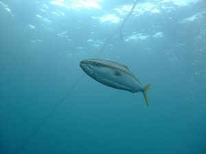 すっかり秋風の川奈です♪透明度最高!!!!!!!ボートではエントリーから水底見えるし、群れはわんさかいるし、ピカチューもいたし!!水底も25度だし、漂ってるだけで最高以外の言葉は出てきません!!イサキ・アジ・スズメダイ・キンギョハナダイ・メジナの群れが塊になりココは日本ではないようなそんな気にさせてくれます。気持ちよかった!!そしてビーチでよく見かける、ワラサですがこんなにくっきり撮れたのは初めてではないでしょうか?獲物が多いんですね。アジ・イサキ・キビナゴアタックです。ダイバーにもアタックしてくるんじゃないかと思うくらい近いですよ。そして今日は特別ゲストにイトヒキアジ4匹が登場しました。大興奮です。以外に泳ぐの早いんですね。ゲストさんのビデオに写っててよかったです。カメちゃんも健在。ニラミギンポ・マルタマオオギガニもいます。昨日見たツチホゼリも健在です。あそうそう、ネコザメもいました。まだまだお宝ザクザクの川奈へぜひ遊びに来てください。明日は8時40分に赤根にGOします!!