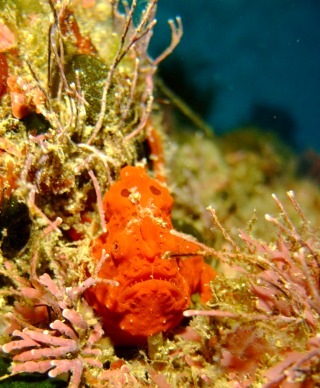 今日も砂地が気持ち良かった~!透明度20mですからね。もう潜っているだけで満足してしまいそうです。今日も昨日に引き続き、イロカエルアンコウ、タカクラタツ、チビハリセンボンを見てきました。もちろんもいます。そしてカミソリウオと10分以上にらめっこしてきて、エキジット。陸に上がり、写真のチェック・・・「ん~、ダメ」の一言(泣)やっぱり、あのふわっふわしたものは厳しい~。