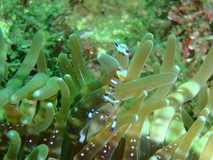 ボートでは赤根に行ってきました。赤根も透明度はイマイチなのですが、キンギョハナダイの群れはすごかったですよ~。毎年この時期に見るタキゲンロクダイっもいっぱい。クダゴンベはお出かけ中で見られませんでしたが、ビーチでは見られないヒメゴンベも見られました。クマノミは、2センチくらいの幼魚もいっぱい流れついていましたよ~。やっぱり赤ちゃんはかわいい!