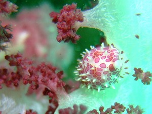 シマウミスズメも幼魚に、小学生くらいに育った子に、たくさん♪ニジギンポは缶や筒の中の巣穴で卵を守っています。画像の子はサザエの殻の中に卵を産んでいましたが、既に結構ハッチアウト済みのようです。ベニカエルアンコウやサキシマミノウミウシもいっぱいいます。ウミテング、ジョーフィッシュ、アカホシカクレエビなど人気の被写体ももちろん観察してきましたよ~。