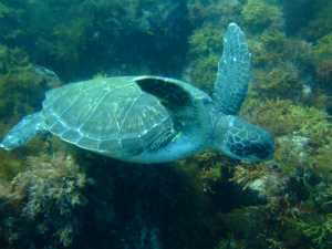 ってことでかなり慎重に水慣れをしてじーっくり浅場で体を慣らしてからいざウミガメゾーンへ!!奥のナオミちゃんには行けないから、手前のスージー君で勝負です。スージーくん期待を裏切りませんね!!ばっちり一緒に泳ぐことができました。