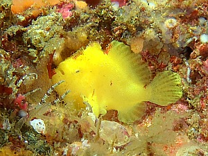 本日もリクエストで海洋公園に潜ってきました。昨日の透明度もそのままでスコーンと抜けています。ほんとに気持ち良い海ですねー!!水深18mの砂地が特に青い海の色と砂地の白が絶妙です。1本目は2の根の手前までじーっくりウミウシ探し。コモンウミウシ、ムカデミノ、シラユキモドキ、サキシマミノ、ニシキウミウシ特大、サメジマオトメ、リュウモンイロなどなど。トラフケボリタカラガイやベニクヌツツミガイがいっぱいいました。コブダイやサクラダイも圧巻ですね!2本目潜る前にブルーベリルのひとみちゃんが声かけてくれて画像のベイビーベニカエルきいろちゃんの居場所を教えてくれました。スペシャルサンクスです。チビカエルは川奈にもたくさんいますがチビベニカエルは居ないんですよね・・・