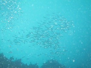 透明度もいいです♪特に沖の方はまたちょっとイイ潮が入ってきそうな気配がありました~。今日はハーフボートも楽しんできましたよ。ビーチ奥のエリアはソフトコーラルも生き生きしていてと~ってもキレイです。ネンブツダイのかたまりやムツの群れ、アジ玉・・・魚影もかなり濃くなっています。漂っているだけで幸せな気分になれるエリアですよ~♪