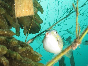 ハナオトメウミウシは交接していました。体中がモコモコなアケウスもかわいい!砂地には季節来遊魚もどんどん増えてます!ホウセキキントキは2匹!ツマジロモンガラやハタタテダイの幼魚、カモハラギンポ、ヒメテングハギなど、見慣れない魚がい~っぱい!ほんとにこの時期楽しいですね♪ジョーフィッシュはなんと3匹も!