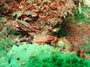 今朝5時ごろ、相当の量の雨が降りましてびっくりして飛び起きました。雨の予報は聞いていましたがこんな豪雨がくるなんてびっくりですよ。朝8時ごろにはすっかり天気に・・・。でも朝の影響で一時電車はストップしていましました。もう平常通りです。ご安心を!!アオリイカの産卵は今日もばっちり見えました!!今日のNO1は、たこつぼ横です。朝日新聞に載った産卵床と同じところです♪うふふ。近くには黄色のカエルアンコウが健在・・・クロはお出かけ中でした。ゴミのなかにいるのはいいのですが・・・まったく見つけにくい。なかなか手ごわいです。近くには白いチビカエルも発見されていますのでぞくぞく登場で嬉しいですね。最近アジの群れが・・・いない・・。うーんどこいった?砂地にお出かけ中かな?ウミウシも恋の季節を迎えておりアオウミウシも集団で・・・☆今日の一枚ベニツケガニ・・・なんでケンカしてたのかなぁ??とった?とられた?うらみっこなしで、仲良くね♪平日ダイバーの皆様!!のんびりゆっくり潜りに来てくださいね~。