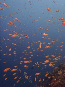 本日は川奈の花火大会です♪ジェスターも大賑わいでした!しかーーし!10時10分のボートに乗った人はみんな夏男さんばかり!!!サザンにまけじと、かっこいいです。赤根でキンギョハナダイの群れに「わぁぁぁーーー」って言いながらつっこんでみたり・・・そっちのけでシマウミスズメを撮ってたり、鬼頭さんのキンギョハナダイを3割集める(笑)技・・に戸惑ってみたり・・・。とってもおもしろかったです。なんせ右が紅一点ですから???ゆるい流れのある赤根でとっても楽しかったです♪のあとはビーチです。アオウミガメはもういいよ~といいながら・・・泳いでると嬉しいくせに~。カマスの群れ・ネンブツダイの群れ・サクラダイなど今日は群れを楽しみました。もちろん2カメGETです♪あしたもがっつり潜ってきますね!!花火・花火・花火!!