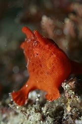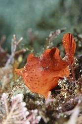 昼からは晴れてきましたが、今日は少しうねりありました。透明度もうねりのせいか少し白濁しているようです。明日からは3連休ですが、お天気が心配ですね(><)寒波がやってくるようですので、皆さんも体調管理にはお気を付けください。画像は浅場にいるイロカエルアンコウの幼魚です。途中、いなくなってしまった時期もありますが、12月の頭からずっと観察できているのです。かれこれ2カ月以上!すごいですよね!ちょっとずつ成長してきて、顔にはボツボツの模様がでてきています(^^;それでも、まだまだかわいらしい子供サイズですよ♪見に来てくださいね!