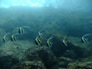 ビーチ 天候晴れ 透明度12m~15m 水温15℃~16℃