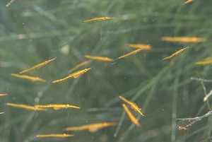 ここのところ姿が見えなかったウミテングも今日また無事を確認。岩地ではノコギリヨウジがたくさん抱卵中~。2センチくらいのごく小幼魚もいましたよ!最近よくみるイサザアミの小群れ・・・。イシモチの子供の群れの中に南方系のヤライイシモチの幼魚の姿が見られましたよ!