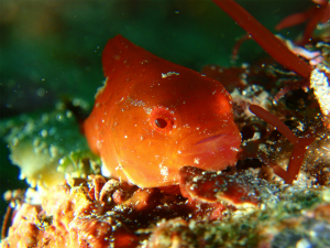 今日は西の風が強かったですねー・・・海に入った瞬間、手などは水中の方があったかく感じるくらい。でもアップウェリングのおかげで透明度はめちゃくちゃ良かったでーす!!本日はマリングのしのっちとゲストさんとおいらで新春ダンゴウオフォトバトル大会を開催しました。各自、ダンゴウオのベストショットを1カット提出。漁協のさきちゃんに一番いけてないワーストワンを選んでもらってワーストワン受賞者が全員にコーヒーおごるっていうルールでした。さてさて結果は??心優しきさきちゃんはワーストワンが選べず「うーん。どれもいい写真だから選べないよ・・・だからあたしがコーヒーおごっちゃう!!」って審査委員長自らコーヒーをごちそうしてくれました。新年早々恐縮です。(梨本さん風に・・・)