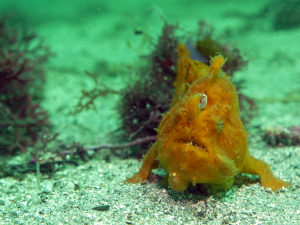 今日はビーチのガイドロープの補修やボートポイントのブイなどのメンテナンスで潜りました。水温が低いわりにグリーンな海が印象的。ノーグローブで潜っていますが長い潜水時間になるとちょっとかじかんじゃいます・・・ビーチをざっくり見たところカエルアンコウが水深10m付近で存在感をアピールしてました。アオリイカも産卵場所を求めているかのように、ガイドロープ沿いの浮きロープあたりを行ったり来たり。今年は産卵床を入れたら早いうちの産卵ショーが見れるかも?カエルアンコウもこの時期からベイビーラッシュが始まります。期待がどんどんふくらみますねー!