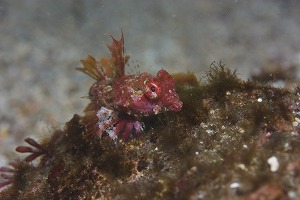 今日はほんの少しの風波~。入ってしまえば、影響ないくらいでしたが透明度は砂が巻き上がってか、ちょっと落ちているところがあります。それでもちょっと奥まで行けば結構抜けているところもありますよ♪1本目のお目当てはイロカエルアンコウのちびちゃん。今日もかわいいです♪ちかくのアズマケボリも久々に見ましたがまだいますよ~。コソデウミウシは今日はみつからず、ミズタマウミウシは見れてます~。