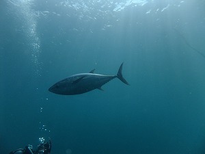 さてさて、15日の川奈花火大会は、大盛況におわりました。川奈夏合宿で来てくれたゲストのみなさん、本当にありがとうございます♪リクエストはもちろん「アオウミガメ」そりゃそうですよね・・・。15日・16日とも見事にどんぴしゃで会うことができました。しかも、一日2回とか、コケの親カメ・フジツボくん・そしてフレンドリーカメちゃんと、コンプリートですよ!!思わず海の中で「肩の荷がおりた」なんてかいちゃったり!!あははは。海ガメ王とクイーンにさせてくれて本当にありがとうございます!!ゲストさんの多い目が大切でした!!会いたい気持ちばっちりです~そして本日はスペシャルゲスト!!画像の、「キハダマグロ」こんな魚・・・海であっていいの??ここはどこ?川奈?なんて思う瞬間でした。ゲストさんの一人にちょーー近づいて・・ゲストさんのビデオには「きゃーーー」の声が!!!そんな大興奮の川奈ビーチでした。あそうそうこれみんなビーチの話です。カンパチやワラサも来てます。毎日なにがあるかわからない、この川奈にぜひ遊びに来てください。お盆もあけて、のんびりまったり過ごしましょう!!あーーー楽しい夏合宿でした!!!みなさんありがと!!