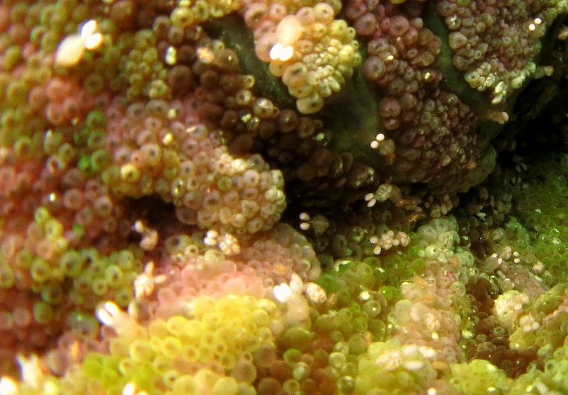 浅いエリアでオススメなのは、個人的にはスズメダイのチビちゃんの群れやイシモチ系のチビちゃんの群れ