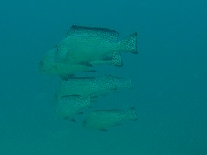 今日は雨が降ったり曇ったり太陽が出たり・・・お天気雨だったりなんだか変なお天気です。近隣のポイントはだいぶ台風の影響が出ているところもあるそうですが、川奈はうねりはうっすらあるものの、ほとんど影響がない程度です。午前中はこの一週間で一番の透明度となり、キレイな海でした~。