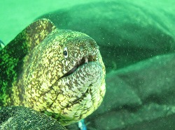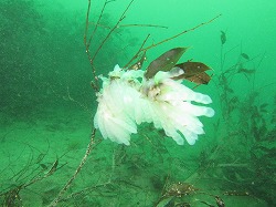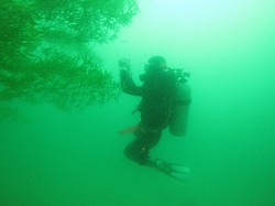 今日もベタベタの海。朝は雨が降っていましたが、今は時折晴れ間も出ます。透明度はきのうに比べるとちょっと回復。砂地にも問題なく出て行けるレベルです。水は伊豆グリーンなのですが、そのグリーンと七夕の笹の葉がマッチしてとってもいい感じなんです!しかも今年はものすごい勢いで卵を産んでいるアオリイカ、早速笹にも産んでます。それがまたキレイ~。下に落ちてしまっている卵を観察してみると・・・はやくも卵の中でしっかりとイカの形に成長していました~。そして卵を狙って産卵床のまわり、ミノカサゴだらけ~になってまし。赤ちゃんミノカサゴもいたりして、とってもかわいいです♪カエルアンコウのベビーも、飽きるくらい見られますよ、なんて贅沢~♪