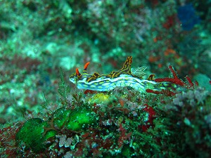 キンギョハナダイは前が見えないほどの群れ~~~!!ビーチでは見られないミアミラウミウシも、原色が鮮やかでキレイなウミウシです。ソフトコーラルやウミカラマツに寄り添って群れてるシラコダイやカゴカキダイもとっても絵になります。ボート赤根もイチオシですよ!