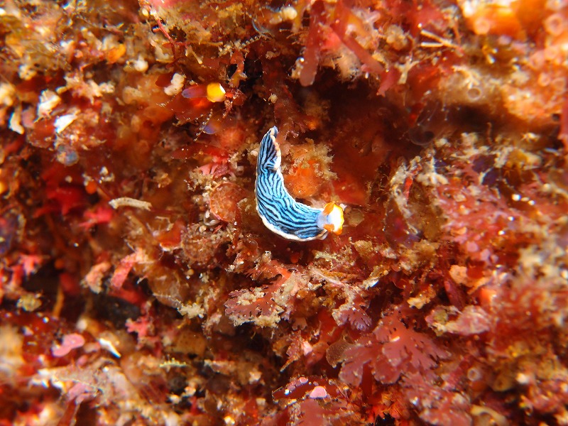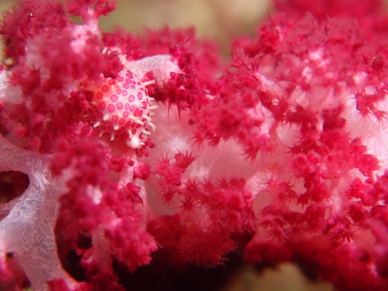 マクロでは、ベニサンゴガニ・サメジマオトメウミウシ・ニシキウミウシなどが見れました